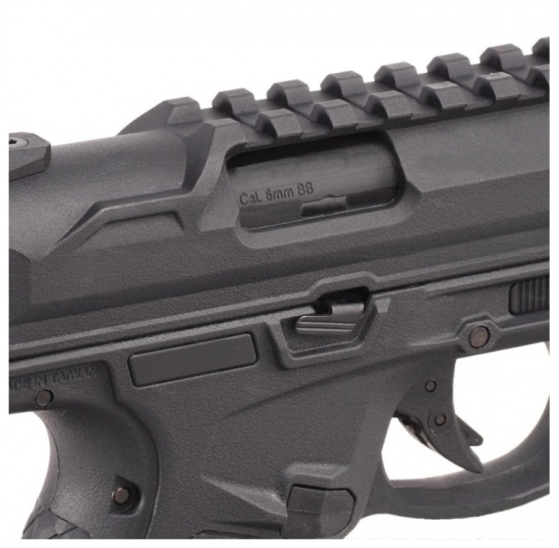 Capătul țevii este echipat cu un inserț de cauciuc care poate fi schimbat cu o piesă de montare a supresoarelor (nu este inclusă). Receiver-ul superior conține, de asemenea, o țintă cu fibră optică de înaltă vizibilitate și o șină superioară integrată pentru lunete cu punct roșu.