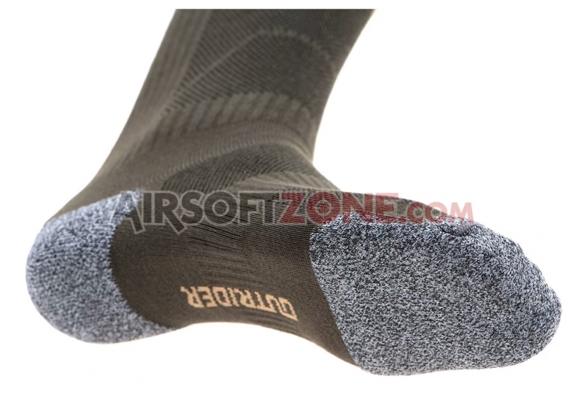 Șosetele din seria Tactical Performance a Outrider sunt caracterizate de confortul și potrivirea lor buna. Construcția zonală a fost poziționată conform cerințelor de confort din EDC (Carry Zilnic), la poligon și în aplicatii pentru forțele de ordine. Compoziția materialului din 47% poliamidă, 26% poliester, 23% polipropilenă și 4% elastan oferă durabilitate extinsă și transfer rapid al transpirației, menținând piciorul cât mai uscat posibil.