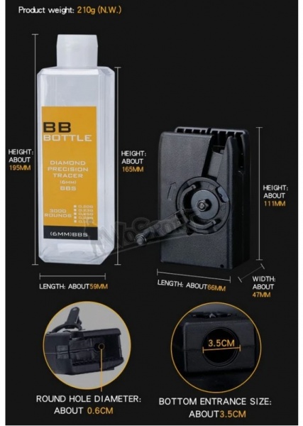 Principalul avantaj al versiunii Bottle este capacitatea de a înșuruba o sticlă (cu gât de 3,5 cm) cu BB-uri direct pe încărcător și de a evita vărsarea muniției peste tot.