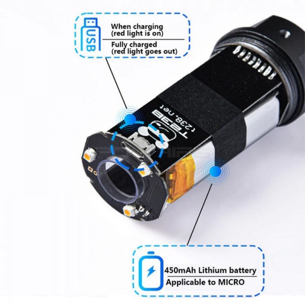 - Battery: 450mah, maximum endurance 25000 rounds, charging with Micro USB cable