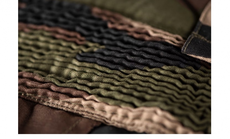 Aceștia sunt fabricați din țesătură Rip-Stop (65% bumbac / 35% poliester), ceea ce îi face pantalonii ușori și durabili. De asemenea, se usucă rapid - indiferent dacă este o zi caldă și transpirată sau vreme ploioasă. În zona centurii și în jurul genunchilor se află o țesătură elastică pentru confort și mobilitate crescută. Un nivel suplimentar de protecție este oferit de protecțiile incluse, concepute pentru a proteja articulațiile prin distribuția eficientă a energiei de impact. Acestea pot fi fixate strâns pe utilizator datorită sistemului de reglare din interiorul buzunarelor superioare și a curelelor din jurul genunchilor.