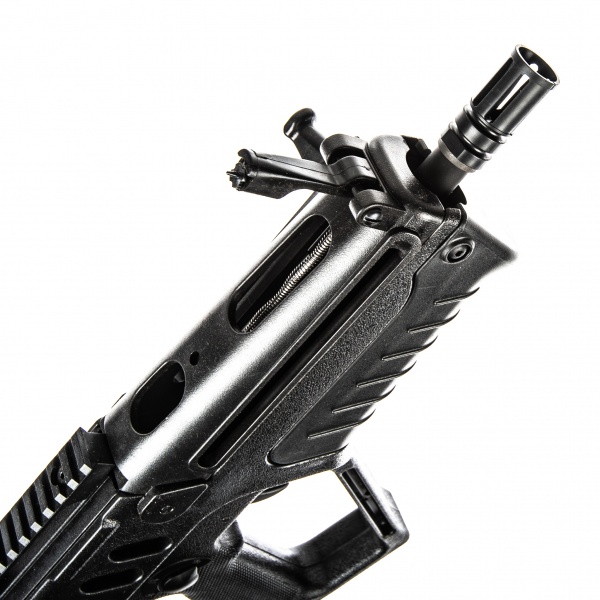 - Este prevăzut su șine RIS, ideale pentru montarea diverselor accesorii tactice