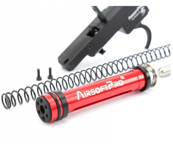 Prinderea pistonului, prinderea declanșatorului și opritorul de ghidaj al arcului sunt realizate din oțel și întărite la HRC 28-32.