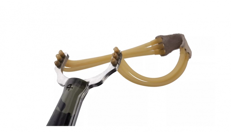 Mânerul este echipat cu plăsele din polimer cu finisaj camuflaj. Banda triplă din cauciuc conferă acestui model o putere considerabilă, motiv pentru care trebuie acordată o atenție sporită pentru a evita accidentările. Punguța este confecționată din piele naturală.